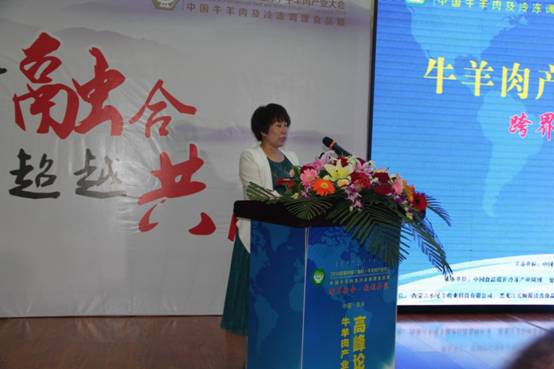 農(nóng)牧業(yè)廳產(chǎn)業(yè)化處副處長郟金梅在牛羊肉產(chǎn)業(yè)發(fā)展高峰論壇上作講座