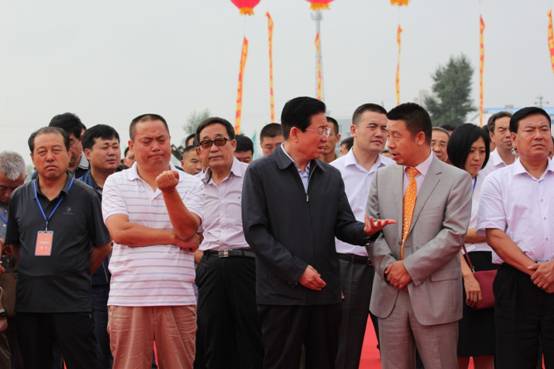 內(nèi)蒙古農(nóng)牧業(yè)廳副廳長(zhǎng)云挨厚(左二)等領(lǐng)導(dǎo)為工廠開(kāi)業(yè)剪彩