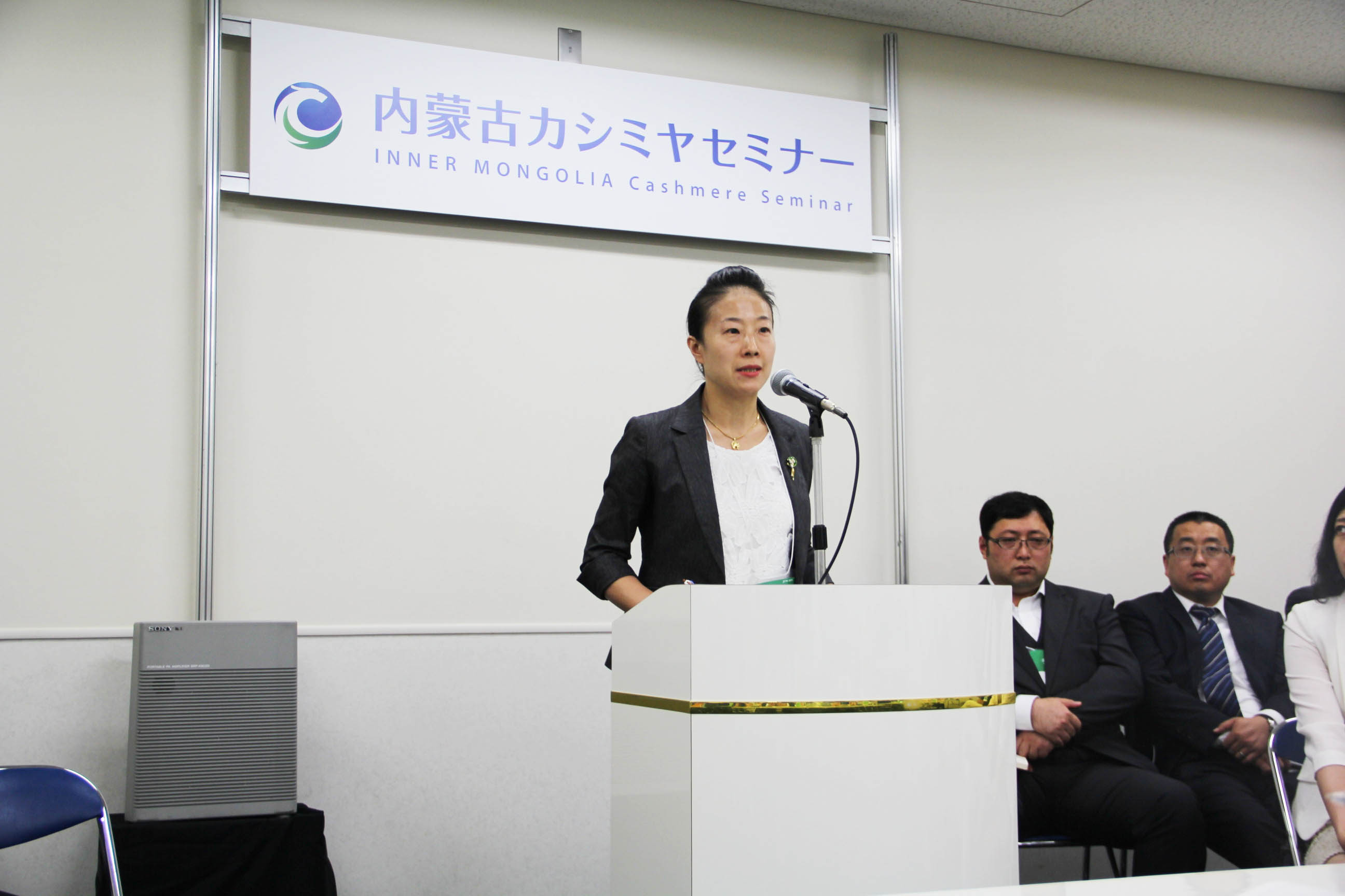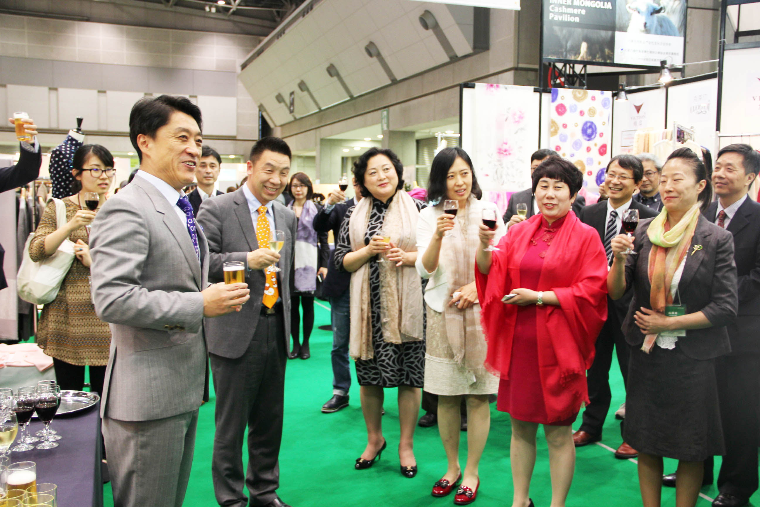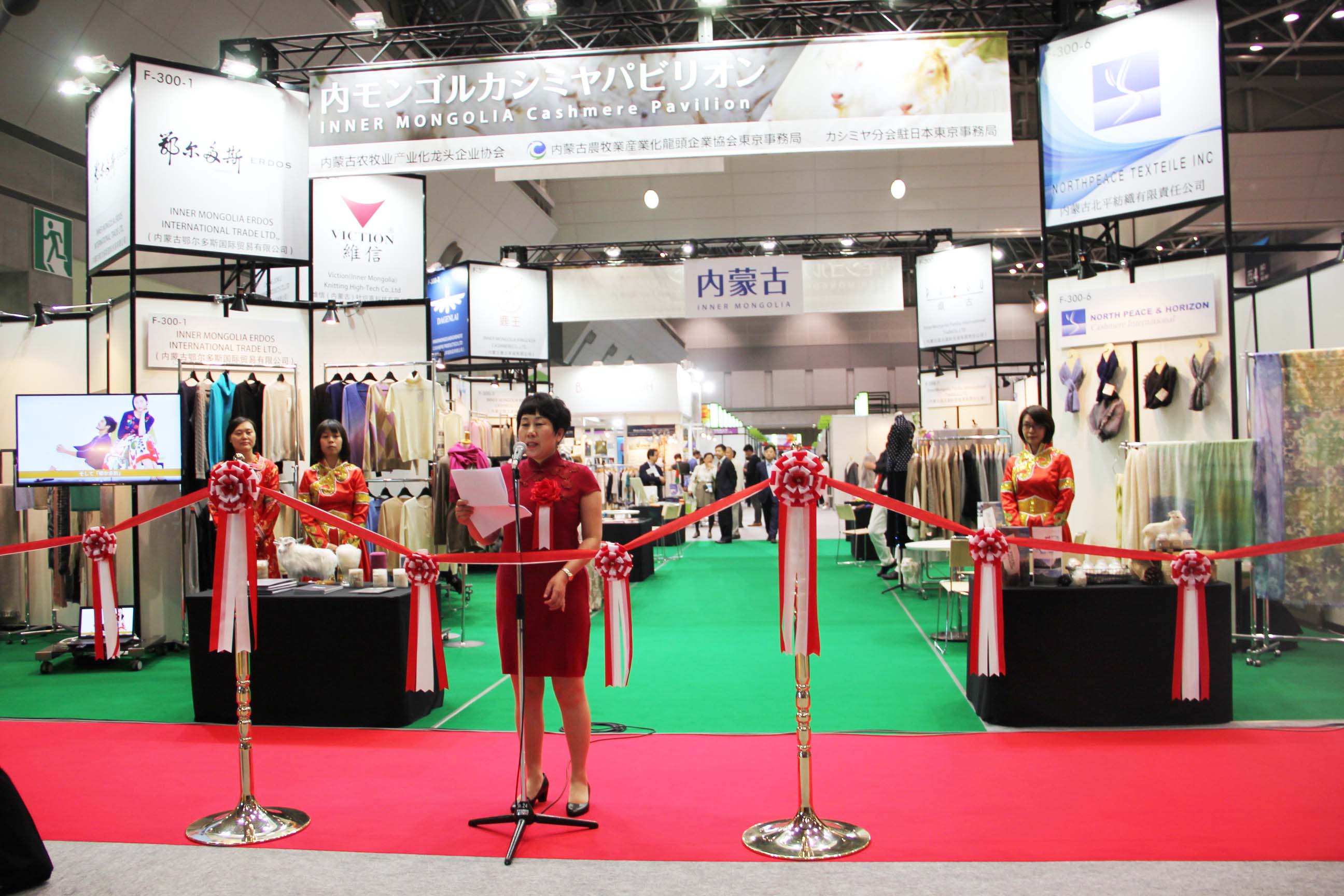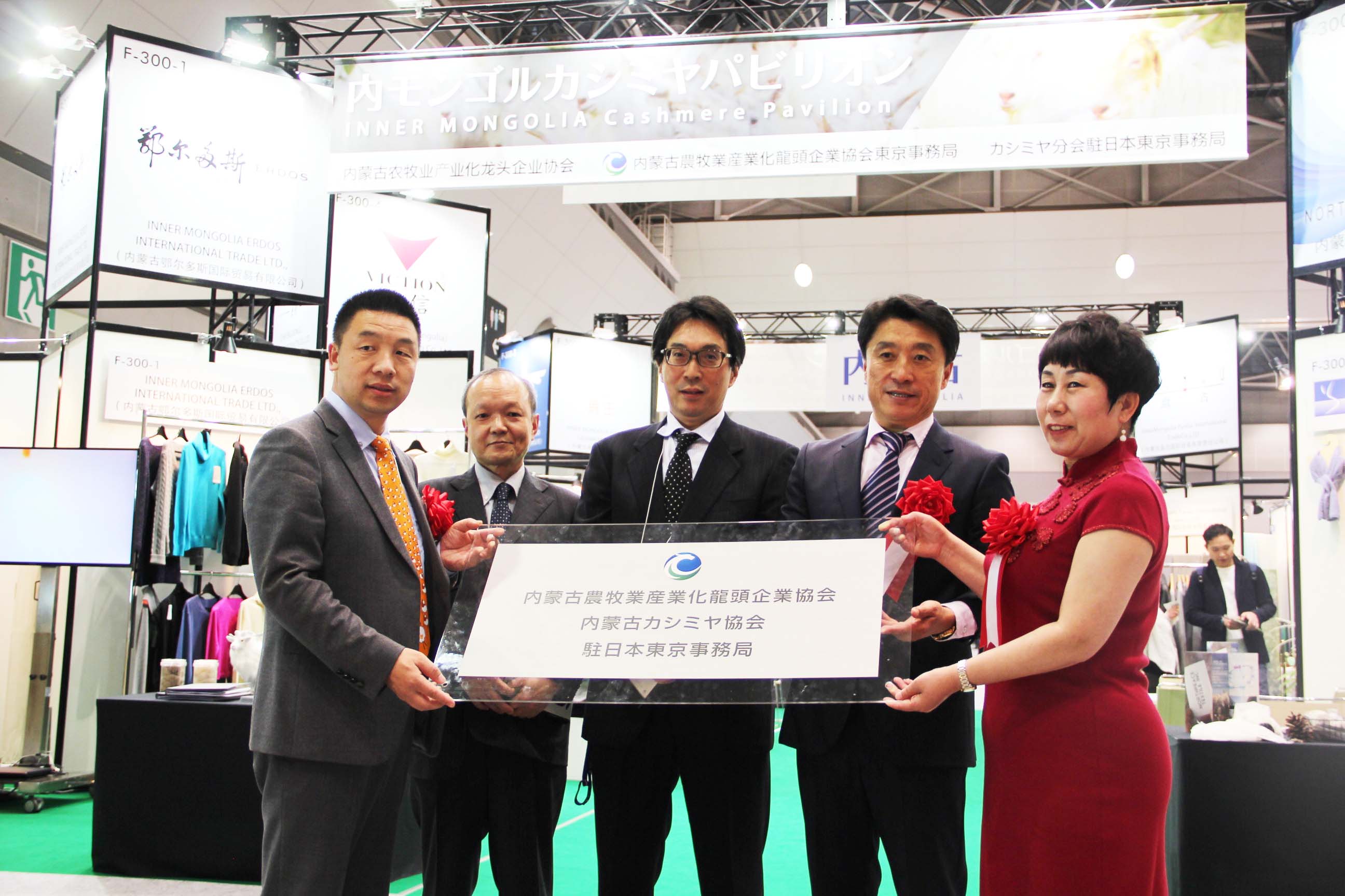 2016426日上午11時(shí),在內(nèi)蒙古羊絨展區(qū)前,舉行了盛大的開業(yè)剪彩儀式,內(nèi)蒙古自治農(nóng)牧業(yè)廳產(chǎn)業(yè)化處副處長郟金梅、內(nèi)蒙古農(nóng)牧產(chǎn)業(yè)化龍頭企業(yè)協(xié)會(huì)會(huì)長閆樹春、內(nèi)蒙古農(nóng)牧產(chǎn)業(yè)化龍頭企業(yè)協(xié)會(huì)羊絨產(chǎn)業(yè)分會(huì)會(huì)長王風(fēng)之出席剪彩儀式,并分別就政府支持、協(xié)會(huì)服務(wù)和企業(yè)自律發(fā)展等幾方面做了精彩致辭。郟金梅副處長表示,希望通過此次活動(dòng),使得社會(huì)各界代表能夠贏得機(jī)遇、拓展空間,取得豐碩的成果,同時(shí)真誠盼望各方來賓、新老朋友能夠進(jìn)一步了解內(nèi)蒙古羊絨,認(rèn)識(shí)內(nèi)蒙古羊絨,并以此為契機(jī),加強(qiáng)內(nèi)蒙古羊絨界與日本企業(yè)的合作,攜手發(fā)展,實(shí)現(xiàn)共贏,共創(chuàng)輝煌。閆樹春會(huì)長在致辭中講到,我們此行不僅是要展示內(nèi)蒙古羊絨原料優(yōu)勢(shì)地位和行業(yè)加工的專業(yè)性,更希望能充分利用各個(gè)平臺(tái)廣泛交流,探討合作途徑的契合點(diǎn),推動(dòng)兩國羊絨行業(yè)多方共贏,共同提升全球市場(chǎng)對(duì)羊絨產(chǎn)品的認(rèn)知度,希望我們的羊絨企業(yè)能團(tuán)結(jié)一致,實(shí)現(xiàn)羊絨產(chǎn)業(yè)的可持續(xù)發(fā)展。羊絨產(chǎn)業(yè)分會(huì)會(huì)長王風(fēng)之在致辭中表示,通過內(nèi)蒙古農(nóng)牧業(yè)產(chǎn)業(yè)化龍頭企業(yè)協(xié)會(huì)羊絨分會(huì)的平臺(tái),我們勢(shì)必會(huì)在培育超細(xì)超長型產(chǎn)絨山羊、提升優(yōu)質(zhì)種群的規(guī)模、建立行業(yè)質(zhì)量標(biāo)準(zhǔn)和抱團(tuán)發(fā)展,積極進(jìn)行海外市場(chǎng)渠道、品牌、投資等多方面取得突破性進(jìn)展,致力于將中國內(nèi)蒙古羊絨打造成為全球性的產(chǎn)業(yè)品牌。