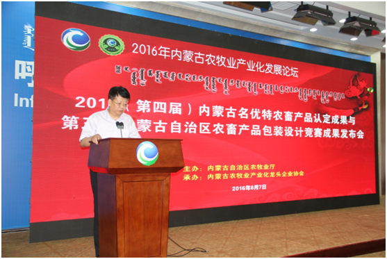 8月7日上午,第四屆內(nèi)蒙古“名優(yōu)特”農(nóng)畜產(chǎn)品認(rèn)定及第三屆內(nèi)蒙古自治區(qū)包裝設(shè)計競賽成果發(fā)布會及內(nèi)蒙古農(nóng)牧業(yè)產(chǎn)業(yè)化論壇在內(nèi)蒙古國際會展中心盛大開幕。內(nèi)蒙古自治區(qū)農(nóng)牧業(yè)廳廳長郭健、副廳長云挨厚、產(chǎn)業(yè)化處處長侯雁冰、辦公室副主任黃偉,中國農(nóng)業(yè)產(chǎn)業(yè)化龍頭企業(yè)協(xié)會綜合部副主任程篤學(xué)、內(nèi)蒙古農(nóng)牧業(yè)產(chǎn)業(yè)化龍頭企業(yè)協(xié)會會長閆樹春,內(nèi)蒙古農(nóng)牧業(yè)產(chǎn)業(yè)化龍頭企業(yè)協(xié)會執(zhí)行會長兼秘書長林永亮,各盟市農(nóng)牧業(yè)局(產(chǎn)業(yè)化辦公室)負(fù)責(zé)人,精品館負(fù)責(zé)人,內(nèi)蒙古農(nóng)牧業(yè)產(chǎn)業(yè)化龍頭企業(yè)負(fù)責(zé)人,各參展企業(yè)負(fù)責(zé)人及包裝名優(yōu)特獲獎企業(yè)負(fù)責(zé)人,協(xié)會辦事處負(fù)責(zé)人、會員單位等200余人出席會議,自治區(qū)農(nóng)牧業(yè)廳產(chǎn)業(yè)化處處長侯雁冰主持會議。本次會議特別邀請到中國農(nóng)業(yè)科學(xué)院農(nóng)產(chǎn)品加工研究所所長、黨委副書記戴小楓做主旨演講。