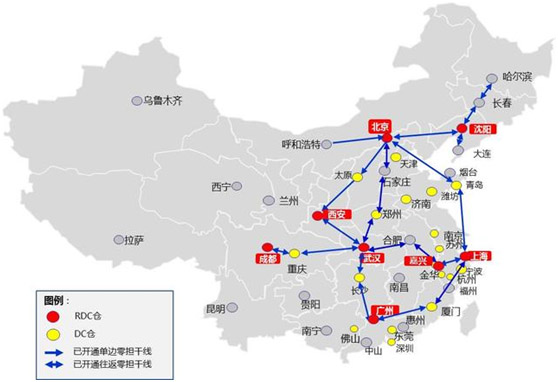 內(nèi)蒙古是我國最大的牛羊肉產(chǎn)地,其主產(chǎn)區(qū)集中在內(nèi)蒙古東部。內(nèi)蒙古地區(qū)東西跨度非常長,直線距離高達(dá)2305KM,跨盟市運輸距離往往也超過500KM,如果跨盟市進(jìn)行中轉(zhuǎn)集散,將會產(chǎn)生高昂的干線運輸費用,而長距離的運輸也會導(dǎo)致整體運輸時效的降低。同時,牛羊肉對冷鏈運輸具有極強的依賴性,必須進(jìn)行冷凍、冷藏。根據(jù)這個特點,順豐推出了針對內(nèi)蒙古牛羊肉冷鏈運輸?shù)慕鉀Q方案,順豐冷鏈運輸網(wǎng)絡(luò)圍繞牛羊肉主生產(chǎn)區(qū),再進(jìn)入全國冷鏈運輸網(wǎng)。針對內(nèi)蒙古牛羊肉主生產(chǎn)區(qū)位于東部,順豐在干線網(wǎng)絡(luò)圍繞內(nèi)蒙古東部開展,干線開設(shè)就近轉(zhuǎn)接目前已開通的冷鏈運輸網(wǎng)絡(luò)節(jié)點,可避免直發(fā)成本高的問題并提升現(xiàn)有干線裝卸率。