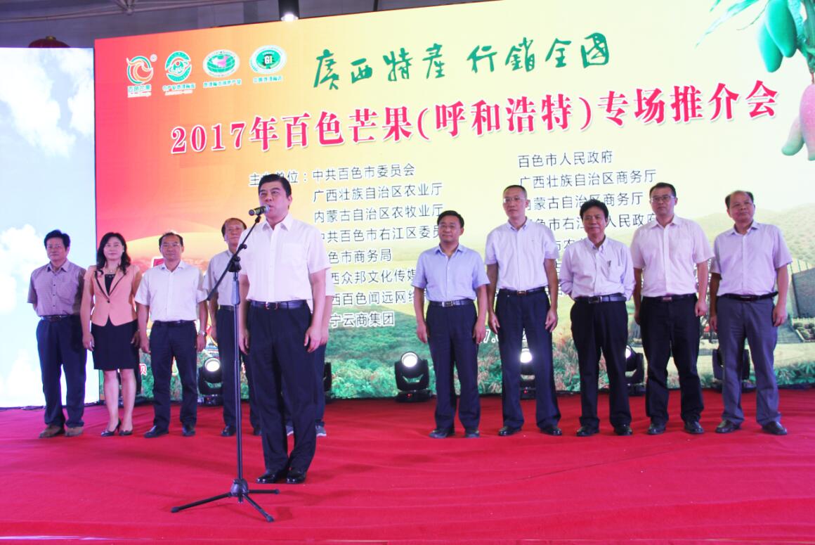 7月27日上午,由中共百色市委員會(huì)、百色市人民政府、內(nèi)蒙古自治區(qū)農(nóng)牧業(yè)廳、內(nèi)蒙古自治區(qū)商務(wù)廳、廣西壯族自治區(qū)商務(wù)廳、廣西壯族自治區(qū)農(nóng)業(yè)廳主辦的2017年百色芒果專場推介會(huì)在協(xié)會(huì)會(huì)員單位、內(nèi)蒙古食全食美集團(tuán)美通食品批發(fā)市場內(nèi)蒙古農(nóng)畜產(chǎn)品展銷大廳舉行。百色市委副書記、統(tǒng)戰(zhàn)部部長楊春庭在推介會(huì)上宣布活動(dòng)正式啟動(dòng),內(nèi)蒙古自治區(qū)農(nóng)牧業(yè)廳副廳長劉永志、百色市政協(xié)副主席韋曉東等領(lǐng)導(dǎo)出席推介會(huì),有關(guān)特邀嘉賓、百色市、縣有關(guān)部門代表、內(nèi)蒙古自治區(qū)有關(guān)部門、呼和浩特市有關(guān)部門負(fù)責(zé)人、客商代表、新聞媒體等參加會(huì)議。