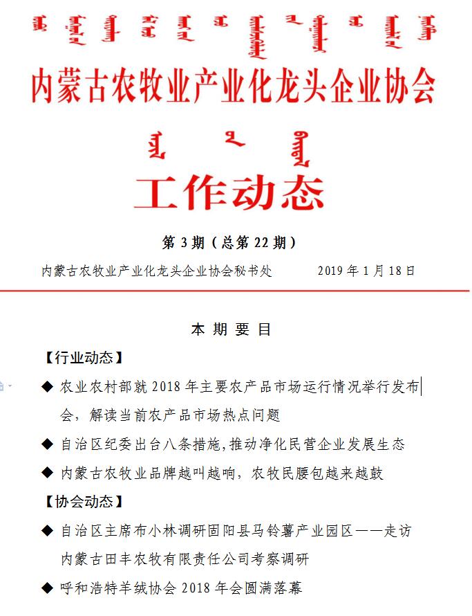 標題:內(nèi)蒙古農(nóng)牧業(yè)產(chǎn)業(yè)化龍頭企業(yè)協(xié)會工作動態(tài)第3期(總第22期)