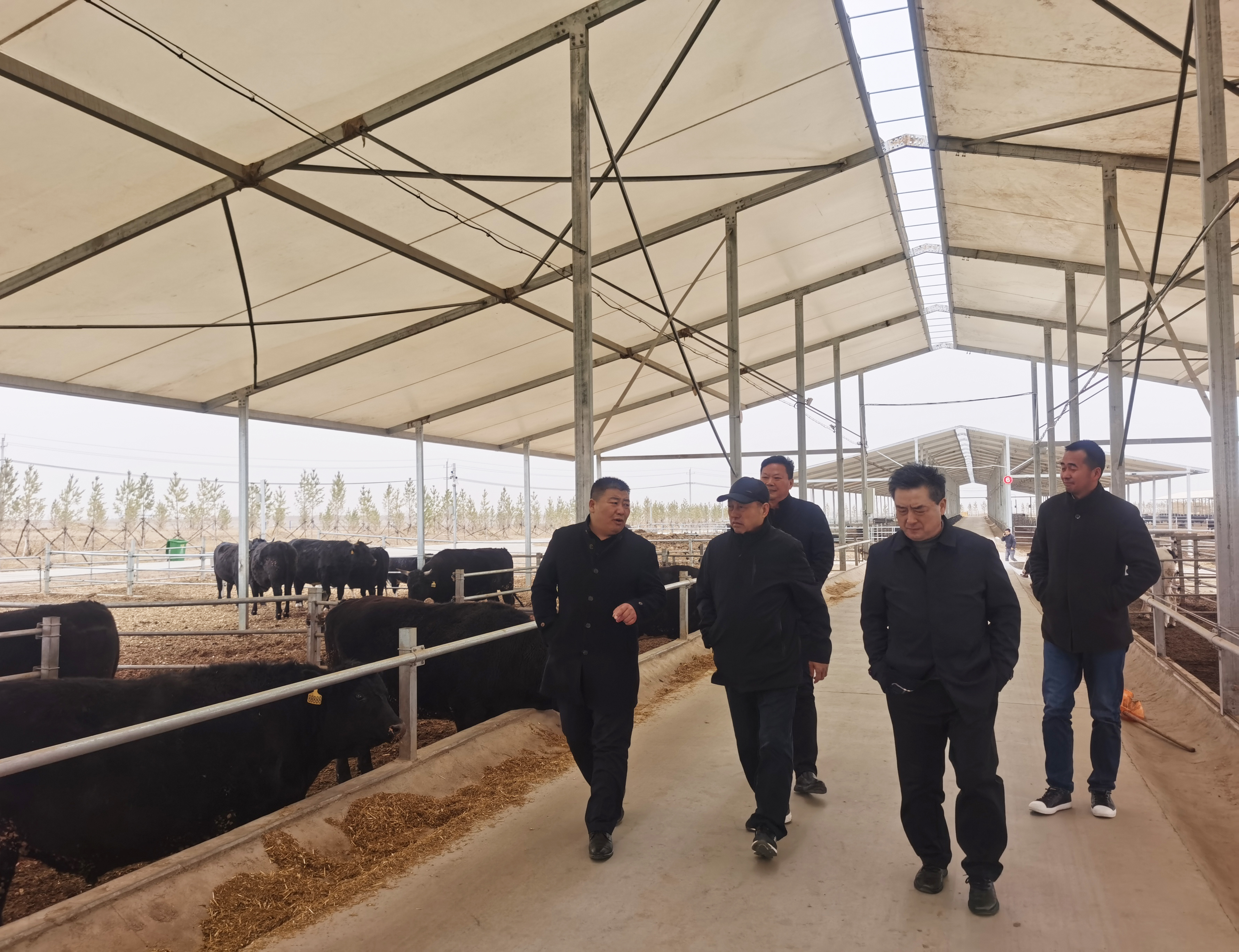 2023年3月21日,湖北省糧油食品進(jìn)出口集團(tuán)金楚牧業(yè)董事長魏建中、總經(jīng)理潘向陽一行4人,先后到草都草牧業(yè)、儈牛農(nóng)牧業(yè)公司,就肉牛養(yǎng)殖繁育、活牛交易、建設(shè)隔離區(qū)等環(huán)節(jié)進(jìn)行實地考察,內(nèi)蒙古農(nóng)牧業(yè)產(chǎn)業(yè)化龍頭企業(yè)協(xié)會執(zhí)行會長林永亮、秘書長李陽全程陪同。