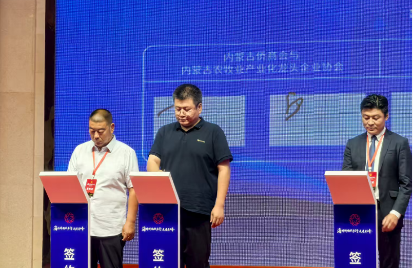 儀式現(xiàn)場還舉行了內(nèi)蒙古僑聯(lián)海外委員聘書頒發(fā)儀式和簽約儀式,內(nèi)蒙古農(nóng)牧業(yè)產(chǎn)業(yè)化龍頭企業(yè)協(xié)會副會長單位赤峰東榮羊絨制品有限公司代表協(xié)會進行簽約。