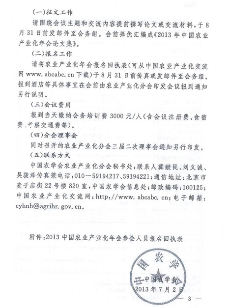關于召開“2013中國農(nóng)業(yè)產(chǎn)業(yè)化年會暨中國農(nóng)業(yè)企業(yè)家論壇”的通知