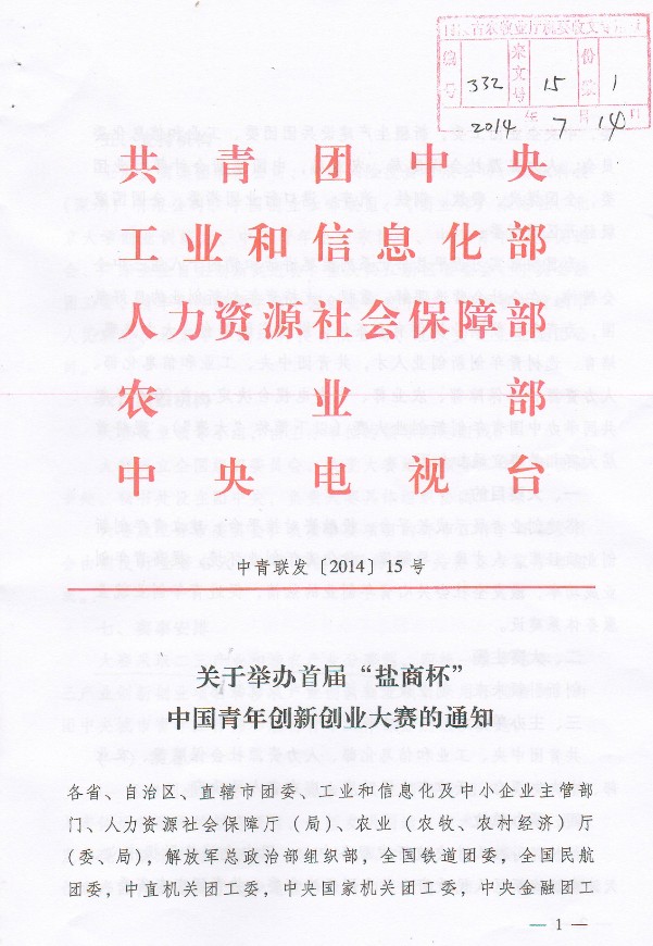 關于轉發(fā)《舉辦首屆“鹽商杯”中國青年創(chuàng)業(yè)大賽的通知》的通知