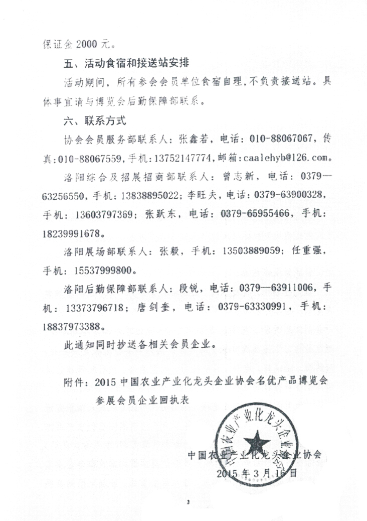 關(guān)于舉辦2015年中國(guó)農(nóng)業(yè)產(chǎn)業(yè)化龍頭企業(yè)協(xié)會(huì)名優(yōu)產(chǎn)品博覽會(huì)的通知