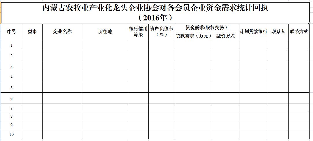 關(guān)于向各會(huì)員企業(yè)征集金融貸款需求的通知