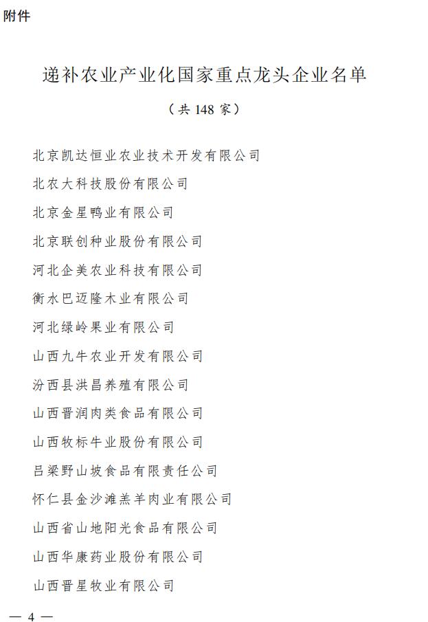 附件:新遞補(bǔ)的農(nóng)業(yè)產(chǎn)業(yè)化國(guó)家重點(diǎn)龍頭企業(yè)名單(共148 家)