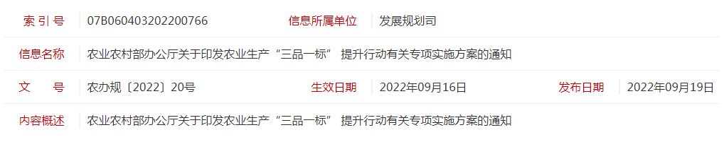 農(nóng)業(yè)農(nóng)村部辦公廳關(guān)于印發(fā)農(nóng)業(yè)生產(chǎn)“三品一標(biāo)” 提升行動有關(guān)專項實(shí)施方案的通