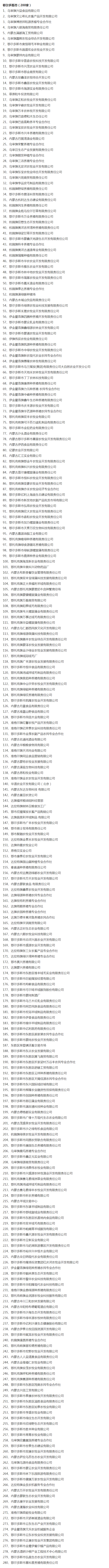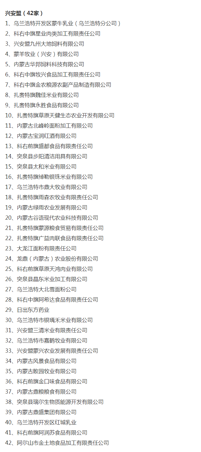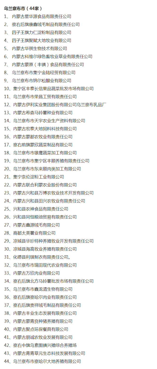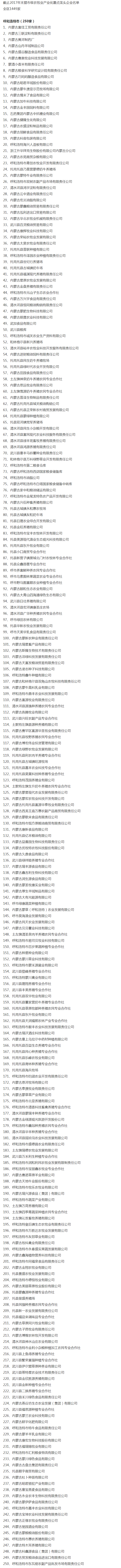 企業(yè)名稱:截止2017年末盟市級農業(yè)產(chǎn)業(yè)化重點龍頭企業(yè)名單