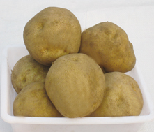 FAVORITA(費烏瑞它)1981年由國家農(nóng)業(yè)部種子局從荷蘭引入,山東省農(nóng)業(yè)科學(xué)院蔬菜花卉所引入山東栽培,取名“魯引1號”,1989年天津市農(nóng)業(yè)科學(xué)院蔬菜花卉所引入,取名“津引8號”,又名“荷蘭薯”、“荷蘭七號”、“荷蘭15”,為我國主栽早熟品種之一,該品種出苗后60—70天即可收獲。 [特征特性]該品種早熟,株型直立,株高約60cm左右,莖桿粗壯,分枝少,葉片肥大,葉緣波狀,花淡紫色;結(jié)薯集中,薯塊膨大迅速,長橢圓形,芽眼淺,黃皮黃肉,表皮光滑,食味好,適合加工和出口創(chuàng)匯,在香港及東南亞各國極為暢銷;抗馬鈴薯Y病毒,對A病毒免疫;淀粉12.4%—14%,還原糖0.03%。植株易感晚疫病。塊莖感晚疫病和環(huán)腐病。輕感青枯病、退化快。產(chǎn)量高,畝產(chǎn)2000kg,高產(chǎn)可達3000kg以上。 [適宜范圍]該品種適宜性較廣,黑龍、遼寧、內(nèi)蒙古、河北、北京、山東、江蘇、廣東、廣西、貴州、四川等地均有種植,是適宜出口的品種。